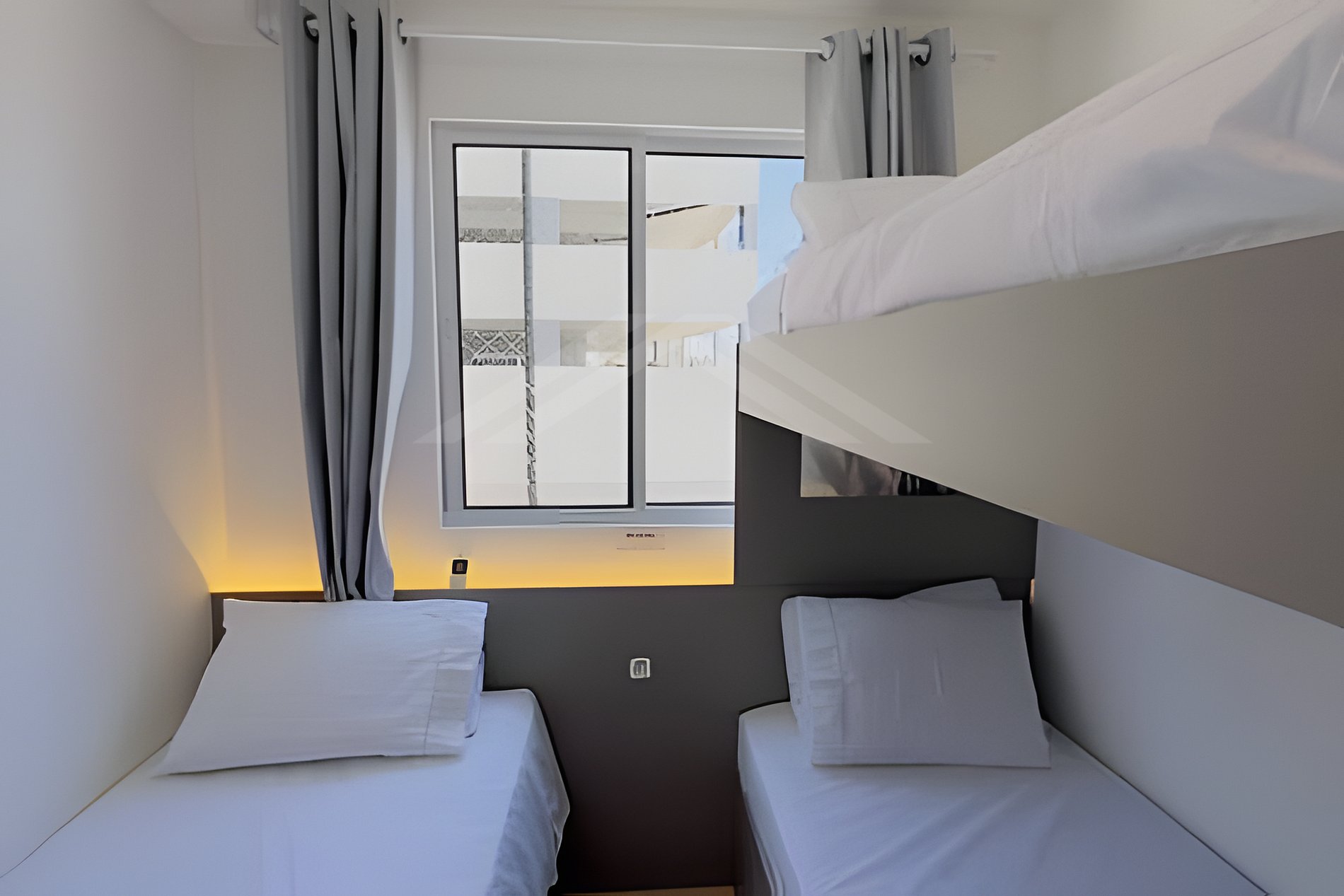 - 01 quarto com 01 cama de solteiro e 01 beliche com ar-condicionado;
